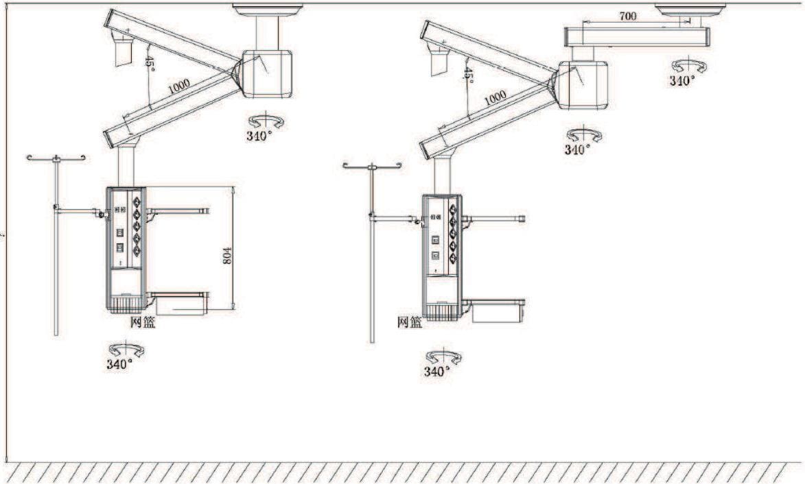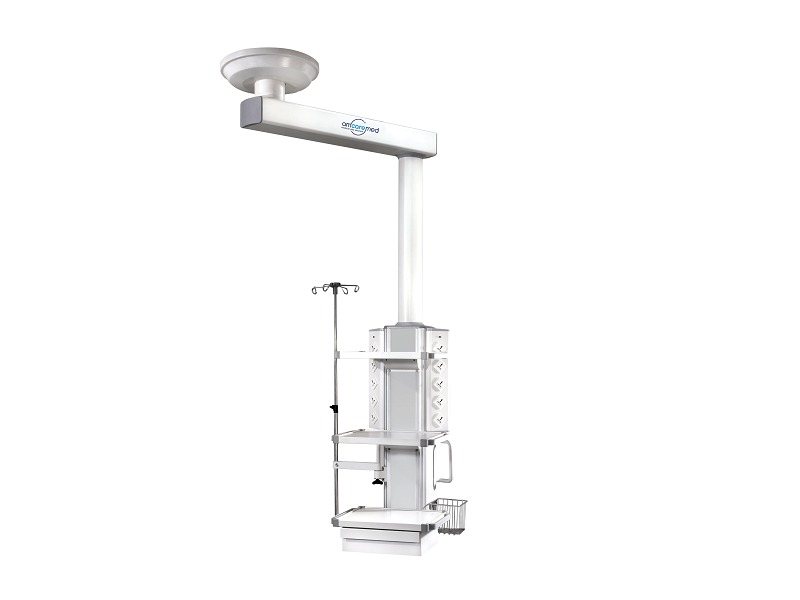 El colgante motorizado de un solo brazo se utiliza principalmente para colocar monitores, cuchillos eléctricos, equipos, etc., que se requieren para la cirugía general; además, proporciona el gas médico necesario, el terminal de salida de potencia. El rango de rotación es de 340 grados. Un brazo horizontal de aluminio. Sistema de frenado por fricción / Sistema de frenado neumático para evitar movimientos. El brazo de techo tiene una capacidad de movimiento ascendente y descendente mediante un motor eléctrico.